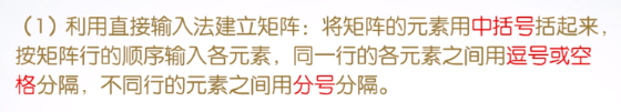 **2 通过序号来引用:**在MATLAB中,矩阵元素按列存储,即首先存储矩阵的第一列元素,然后存储第二列元 素,一直到矩阵的最后一列元素。矩阵元素的序号就是矩阵元素在内存中的排列顺序。