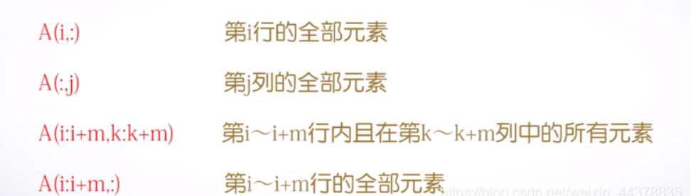 A(:)将矩阵A的每一列元素堆叠起来成为一个列向量。